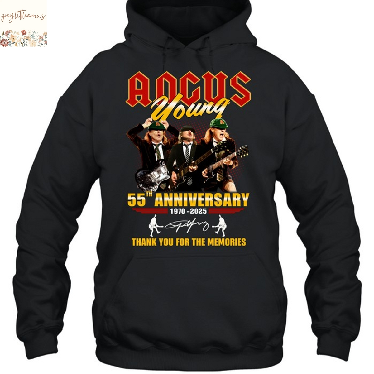 AC DC Angus Young 55th Anniversary Signature Thank You For The Memories Unisex T-Shirt, Hoodie, Ladies, Long Sleeve, Sweatshirt, Mug