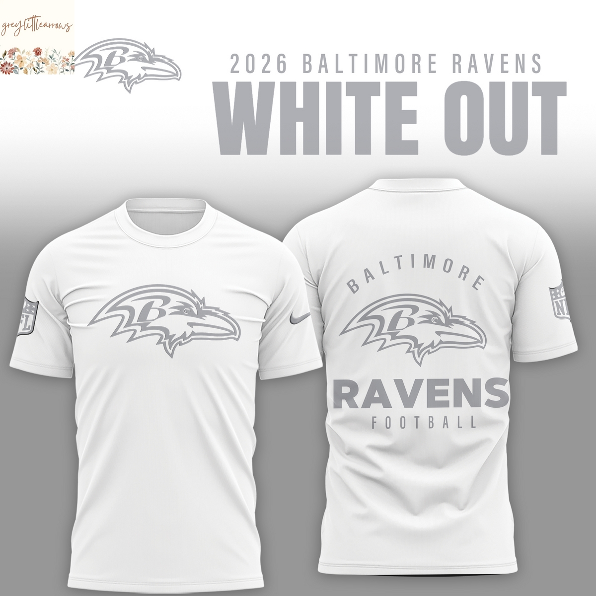 Baltimore Ravens 2026 White Out 3D T-Shirt Information: