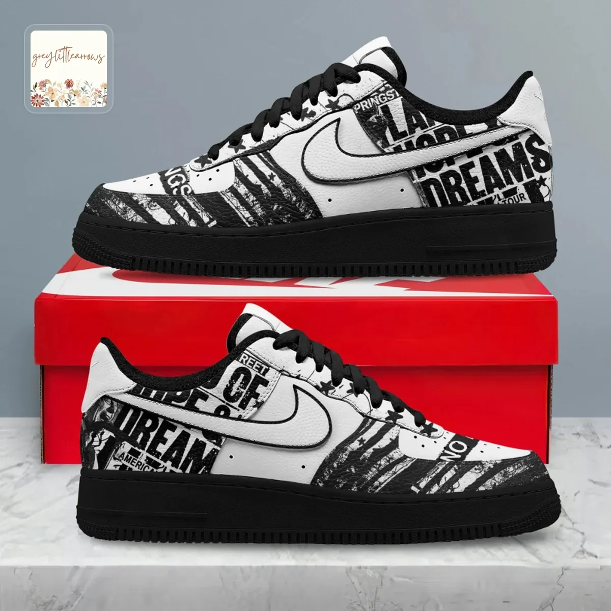 This Bruce Springsteen Land Of Hope And Dreams Custom Air Force 1 Sneakers… Imagine the thrill when that package finally lands on your doorstep. You’re not just getting shoes; you’re unboxing a piece of rock ‘n’ roll legend, ready to ignite your style.