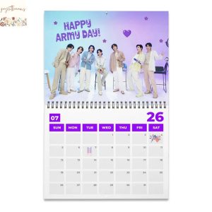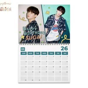 Measuring at an ideal size, typically 12×12 inches when closed and expanding to 12×24 inches when open, the calendar strikes the perfect balance between being a prominent decorative piece and a functional organizational aid, providing ample visual impact without overwhelming wall space. The robust spiral binding allows for effortless page-turning, ensuring that each month’s artwork is displayed flawlessly and the calendar hangs flat against any surface, making it easy to mark appointments without creasing. The grid layout for each month is thoughtfully designed, offering generous space within each daily box for jotting down reminders, appointments, birthdays, and personal notes, ensuring you stay meticulously organized throughout the year. Important public holidays are clearly marked, and a significant advantage for fans is the inclusion of key BTS-related dates, such as members’ birthdays and the group’s debut anniversary, subtly integrated to delight and inform the ARMY. This attention to detail transforms a standard calendar into a truly personalized experience, allowing fans to feel even more connected to the group’s journey.