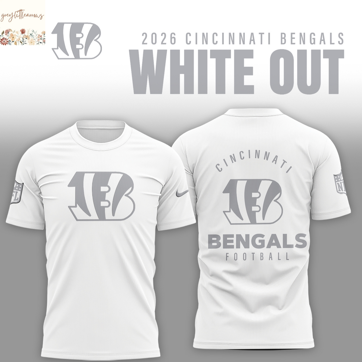 Cincinnati Bengals 2026 White Out 3D T-Shirt Information: