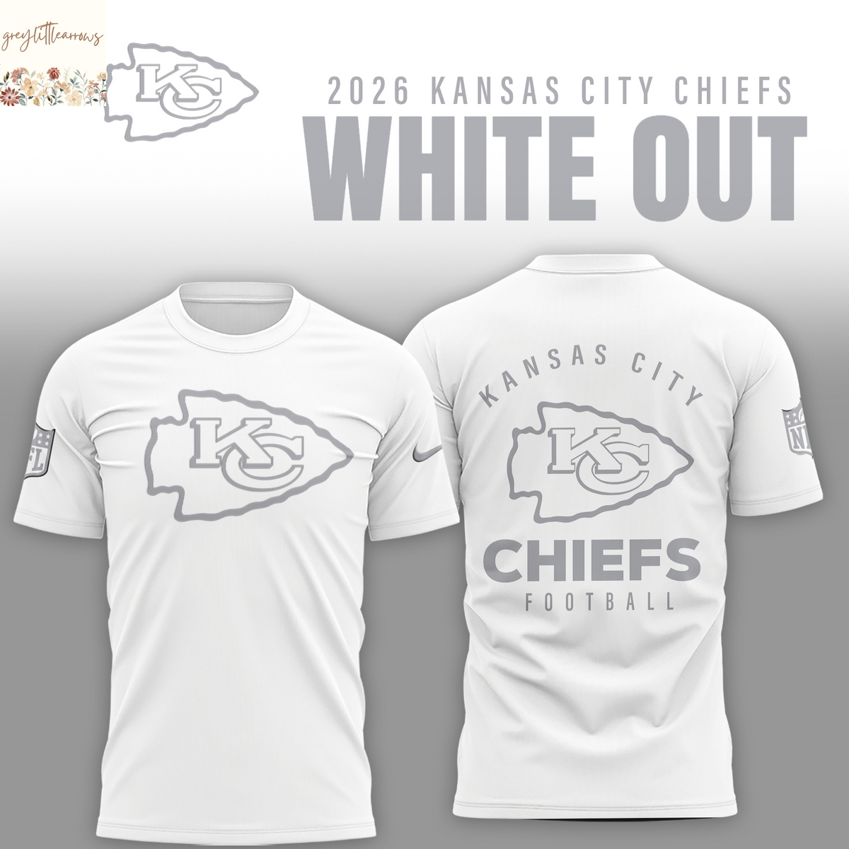 Kansas City Chiefs 2026 White Out 3D T-Shirt Information: