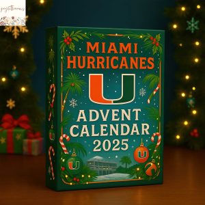 The Miami Hurricanes 2025 Christmas Advent Calendar presents an unparalleled fusion of collegiate athletic passion and festive holiday tradition, designed meticulously to delight the most dedicated supporters of The U. Measuring substantial dimensions, the calendar itself is a robust, premium-quality board, emblazoned with the vibrant signature colors of orange and green. Its front facade proudly displays the iconic “U” logo alongside a playfully festive rendition of Sebastian the Ibis, perhaps sporting a Santa hat or nestled amongst tropical, snow-dusted palm trees, capturing the unique spirit of Miami holidays. This sturdy construction ensures the calendar can be proudly displayed throughout the holiday season, becoming a decorative centerpiece that subtly screams team pride.