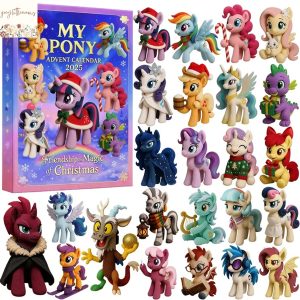 Behind these doors, children will find a captivating assortment of My Little Pony figures and themed accessories. The core appeal lies in the collection of miniature pony figures, often including fan favorites such as Twilight Sparkle, Pinkie Pie, Rainbow Dash, Rarity, Fluttershy, and Applejack, sometimes even introducing supporting characters or adorable baby ponies. These figures are typically molded from durable plastic, perfectly sized for small hands to grasp and manipulate, and frequently feature special holiday-themed outfits or sparkly finishes unique to the calendar. One day might reveal Pinkie Pie wearing a tiny Santa hat, another day could unveil Rainbow Dash adorned with a festive scarf, adding a special touch to familiar characters.
