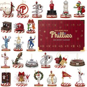 Inside this impressive structure, recipients will discover a diverse array of high-quality merchandise, carefully selected to delight collectors and everyday supporters alike. Expect exclusive 2025 player trading cards, some featuring limited-edition holographic designs or reprinted player autographs that become instant collector’s items. Daily doors might reveal a series of mini bobbleheads, starting with the iconic Phillie Phanatic, followed by fan-favorite players from the current 2025 roster, each intricately detailed and perfect for desk display. Further surprises include a collection of commemorative pins, showcasing various Phillies logos throughout history or celebrating significant team achievements, along with high-quality embroidered patches perfect for custom apparel. Practical items are also thoughtfully integrated, such as a sturdy Phillies-branded bottle opener, a set of durable coozies featuring different team designs, a stylish enamel keychain, or a compact, officially licensed stadium-blanket for those chilly game nights. Small decorative elements like mini Christmas tree ornaments shaped like baseballs or team caps, and sheets of premium vinyl stickers, allow fans to personalize their belongings with their team pride. Some days might even hold a special discount code for the official Phillies team store, or access to exclusive digital content like behind-the-scenes videos from spring training or a personal message from a team legend, adding an interactive and modern dimension to the traditional advent experience.