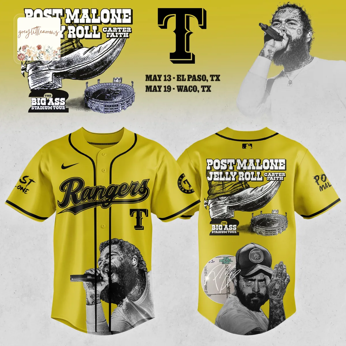This Post Malone Jelly Roll Big Ass Stadium Tour Baseball Jersey is your go-to for showing off your love for the tour. It’s an everyday lifestyle item that brings a piece of the concert vibe right into your wardrobe, perfect for casual outings or just chilling.