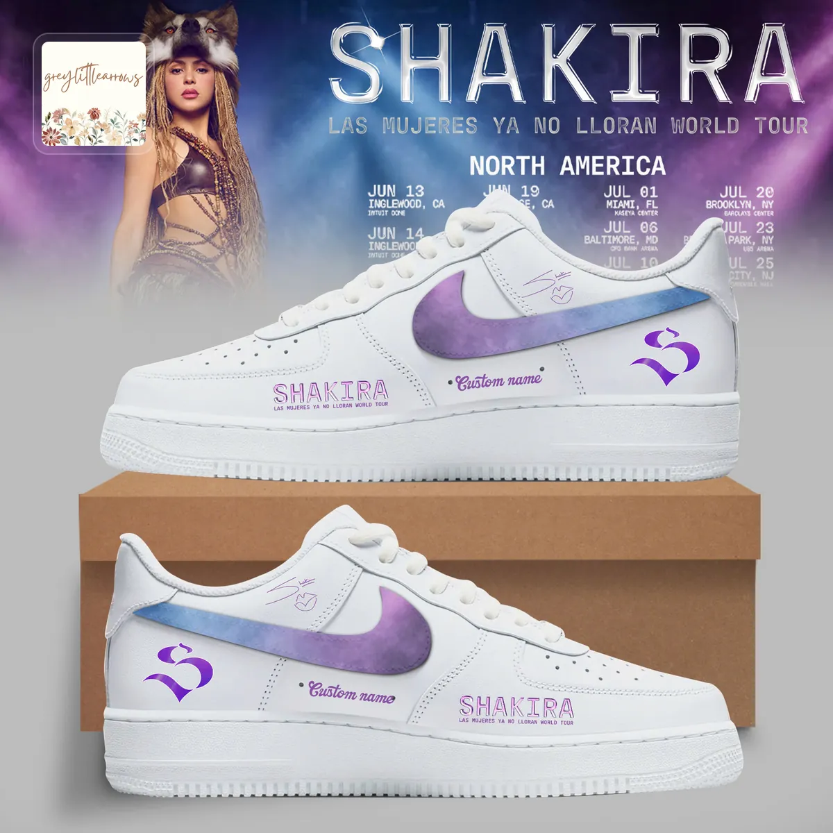 This Shakira Las Mujeres Ya No Lloran World Tour Air Force 1 lets you walk with the rhythm of a legend. It’s a powerful way to celebrate her incredible artistry and the empowering message of her latest album and tour. Show your unwavering respect and connection to Shakira’s enduring legacy.