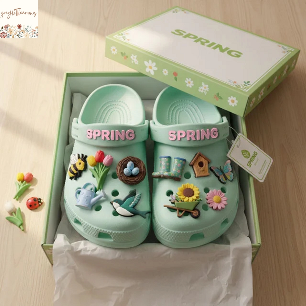 The true essence of “Spring Crocs With Charms” truly comes alive through its aesthetic and personalization options. The collection features a palette of cheerful, bright, and pastel hues—think mint greens, sky blues, sunny yellows, lavender purples, and coral pinks—that instantly evoke the spirit of spring. These vibrant colors serve as a perfect canvas for the included or separately purchased Jibbitz™ charms, which are the heart of the product’s customization appeal. Users can adorn the ventilation ports with an array of spring-themed charms, such as buzzing bees, blooming daisies, fluttering butterflies, tiny ladybugs, cheerful suns, or even cute fruit designs. This modular system allows wearers to mix and match, reflecting their mood, personal interests, or even a specific outfit. It transforms the footwear into a dynamic accessory that can be updated as often as desired, offering an unparalleled avenue for self-expression that traditional shoes simply cannot match. For those who value individuality and love to infuse their personality into every detail, these charms provide an engaging and playful outlet.