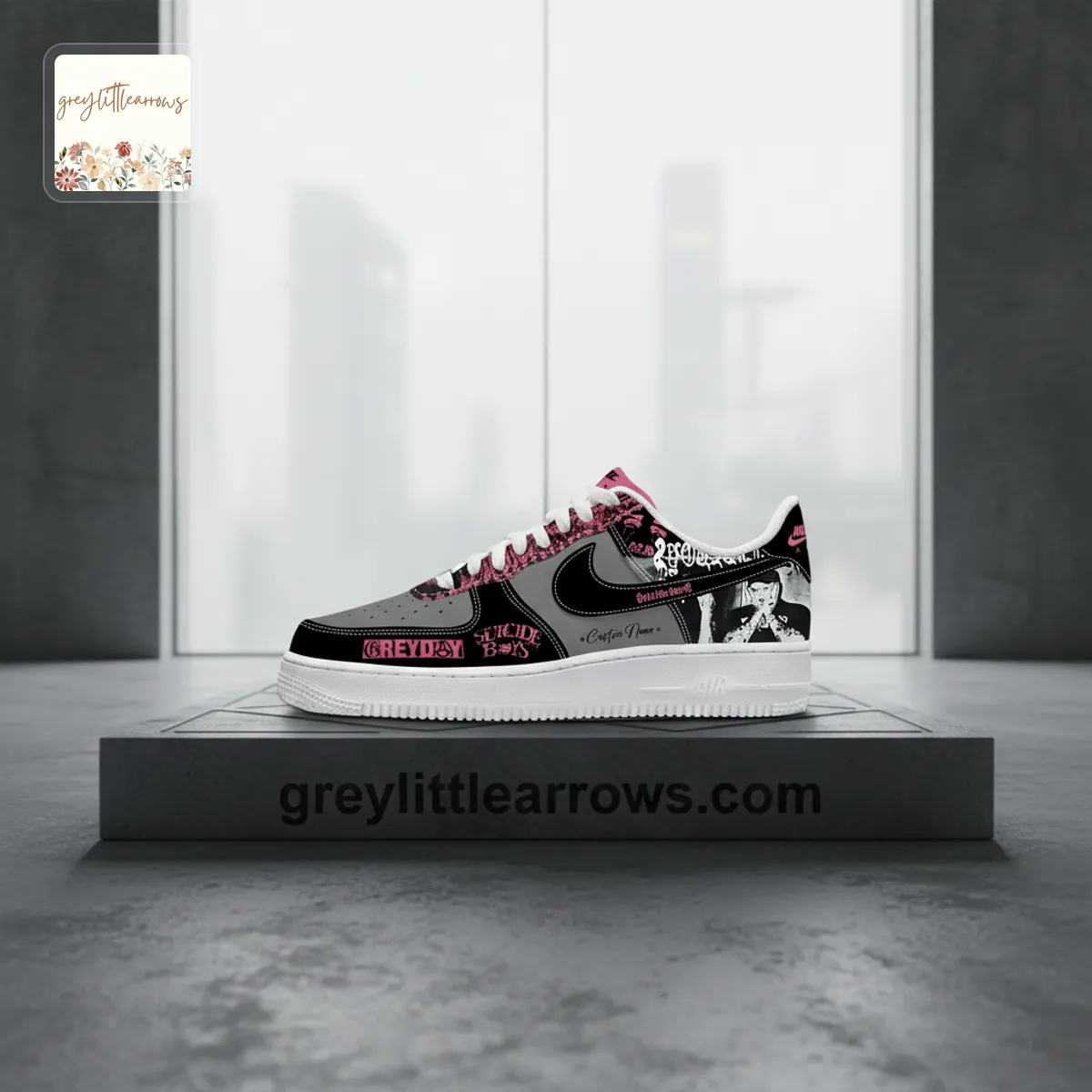 - Striking Details: The iconic GREYDAY graphics and Suicideboys imagery are boldly displayed, making every step a statement. The vibrant pink accents against the dark tones ensure these sneakers are impossible to ignore.