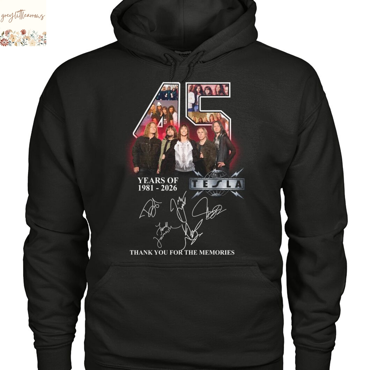 Tesla 45 Years Of 1981-2026 Signature Thank You For The Memories Unisex T-Shirt, Hoodie, Ladies, Long Sleeve, Sweatshirt, Mug