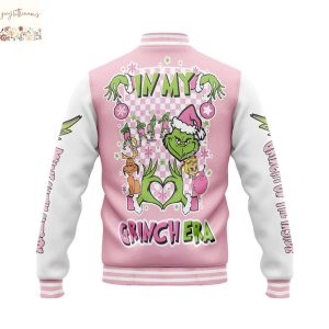 Bringing together iconic holiday mischief with classic athletic style, this Grinch x Christmas Baseball Jacket is a definitive statement piece for the festive season, meticulously designed to delight fans and provide unparalleled comfort. The jacket immediately captures attention with its vibrant color palette, typically featuring a rich Grinch-green body, contrasting bright red or crisp white sleeves, and striped rib-knit details on the collar, cuffs, and hem that perfectly encapsulate the spirit of both Christmas and classic varsity wear. Every inch of this garment speaks to an extraordinary level of detail, boasting a collection of meticulously crafted patches and intricate embroidery that bring the Grinch’s world to life. You’ll find the Grinch himself depicted in various mischievous poses, perhaps mid-scheme with a stolen present, or wearing his iconic Santa hat, all rendered with a tactile chenille texture that adds depth and a premium feel. Max, the loyal dog, might also make an appearance, faithfully by the Grinch’s side, while festive elements like snowflakes, candy canes, and even glimpses of Whoville’s whimsical architecture are subtly integrated into the design, creating a narrative on fabric. These aren’t mere screen prints; the substantial embroidery and plush chenille patches offer a three-dimensional quality that is both visually striking and delightful to touch, promising longevity far beyond a single holiday season.