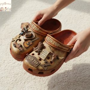 What truly sets this product apart, however, is the meticulous integration of Zach Top’s unique brand and aesthetic. The Crocs themselves are presented in a carefully selected color palette that reflects Zach Top’s authentic, roots-driven country persona – perhaps a deep, earthy brown reminiscent of rugged landscapes, or a subtle, vintage-inspired cream with distressed accents that evoke classic Americana. Subtle graphic details might be incorporated into the upper, such as a faded plaid pattern or a discreet, stylized rendition of his logo, creating a sophisticated yet approachable design that resonates with his fanbase without being overtly flashy. This thoughtful design allows individuals to proudly display their allegiance to Zach Top, transforming a utilitarian shoe into a statement piece that speaks volumes about their musical tastes and personal style. The design effectively meets the need for unique merchandise that allows fans to connect more deeply with their favorite artist, offering a tangible piece of his brand that integrates into everyday life.